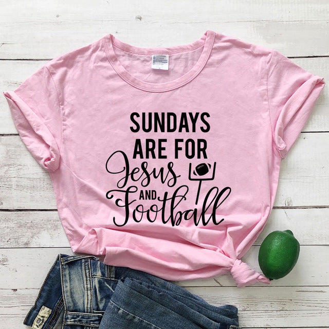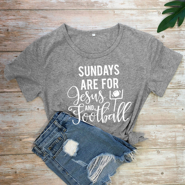 Casual Unisex Short Sleeve Game Day Tshirt Women Religious Christian Faith Tees Tops Sundays Are for Jesus and Football T-shirt