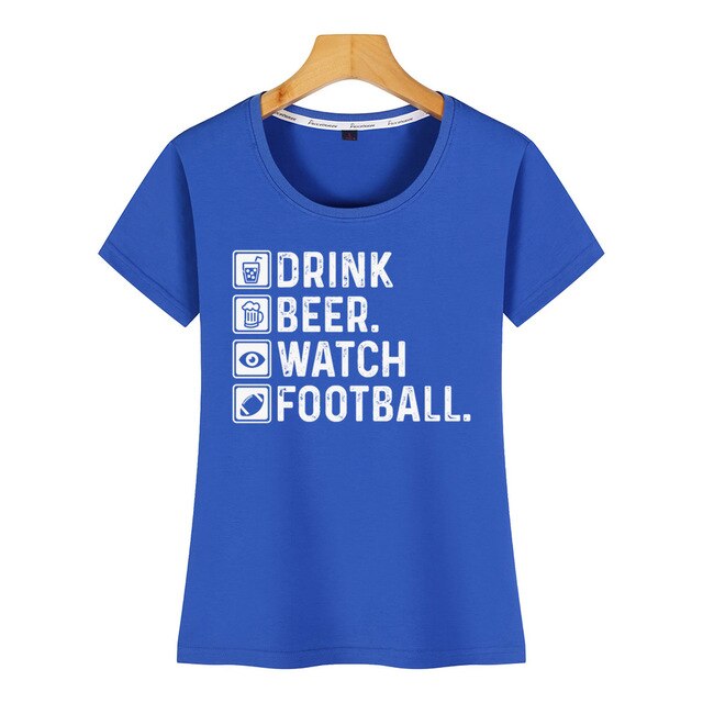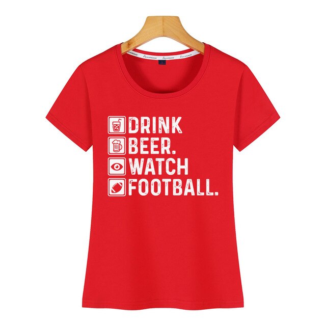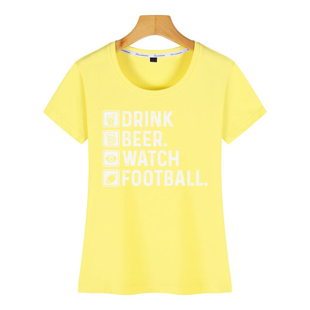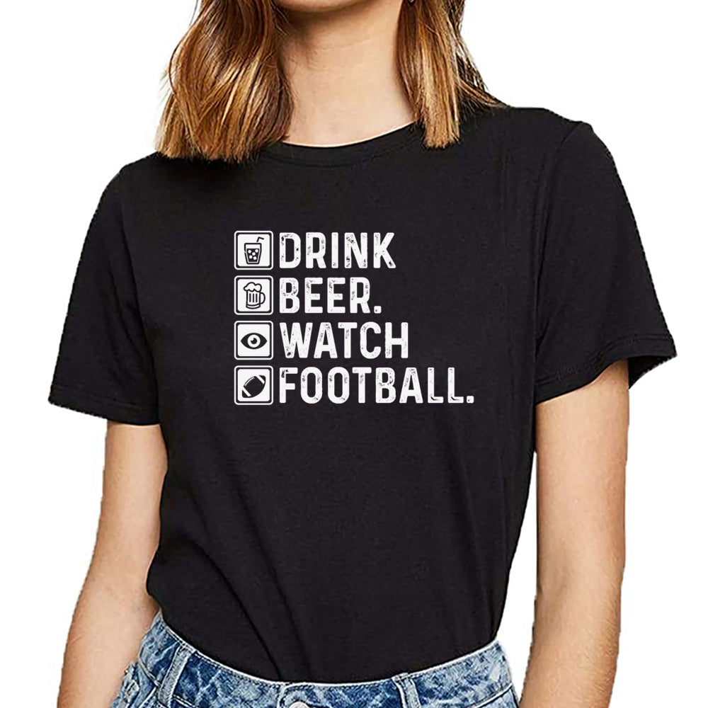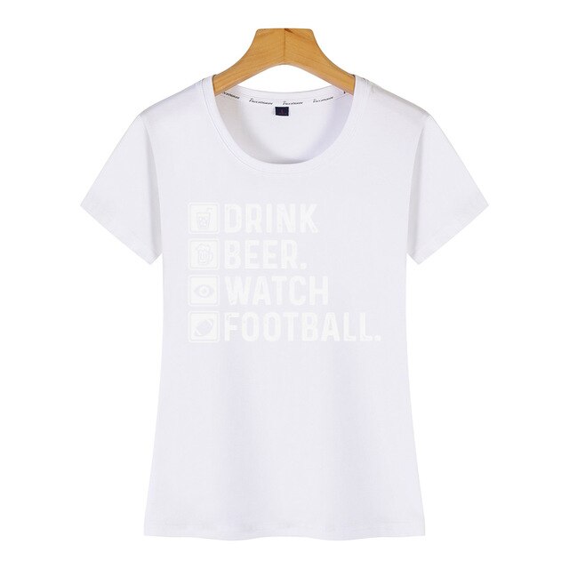 Tops T Shirt Women drink beer watch football funny football design Humor White Custom Female Tshirt