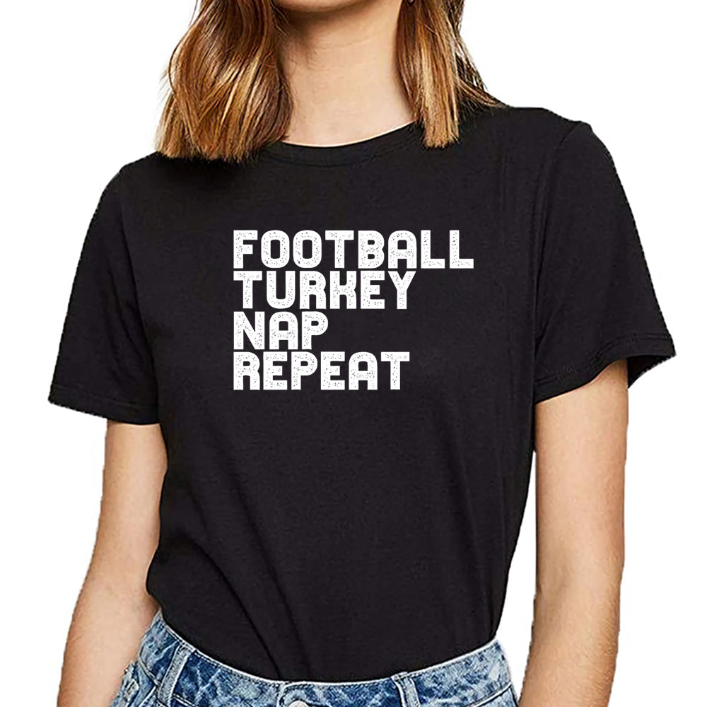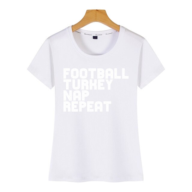 • Load image into Gallery viewer, Tops T Shirt Women football turkey nap repeat design Kawaii Inscriptions Short Female Tshirt