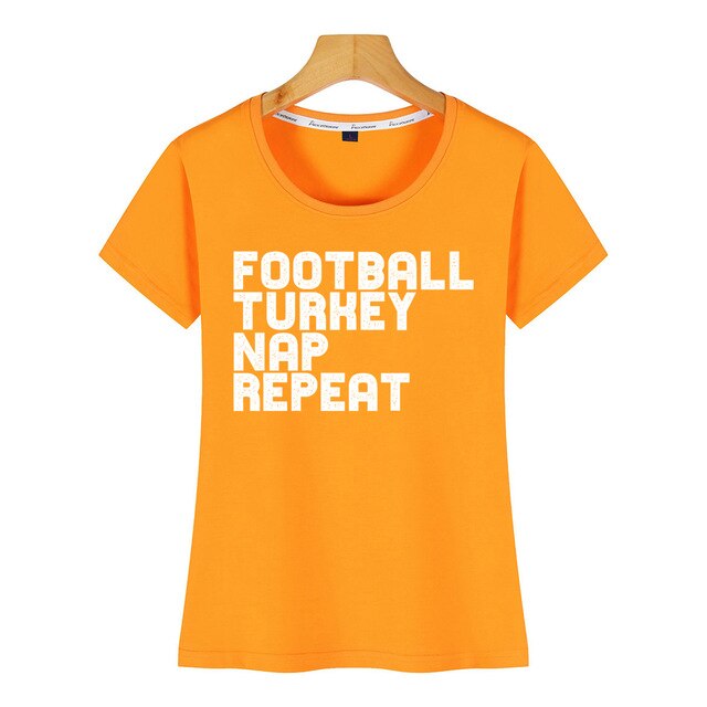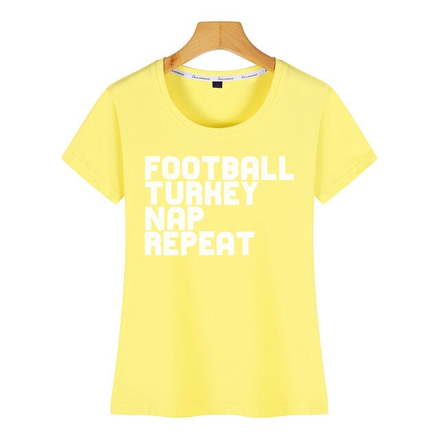 Tops T Shirt Women football turkey nap repeat design Kawaii Inscriptions Short Female Tshirt