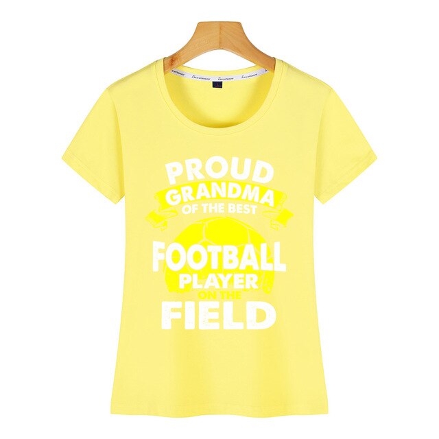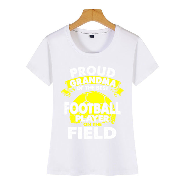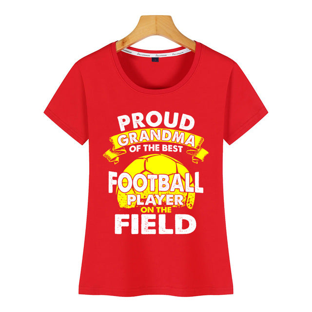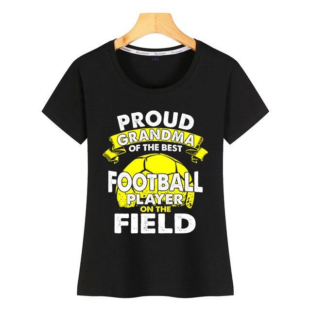 Tops T Shirt Women proud grandma of best football player on the field Casual  Black Custom Female Tshirt