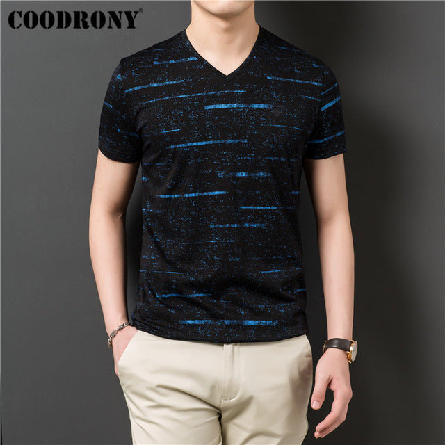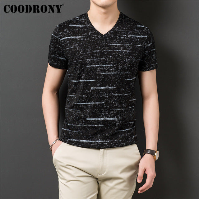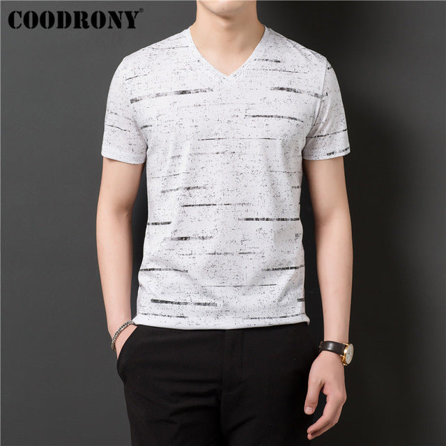 COODRONY T Shirt Men Streetwear Striped V-Neck Tshirt Short Sleeve T-Shirt Men Clothes 2019 Summer Cotton Tee Shirt Homme S95132
